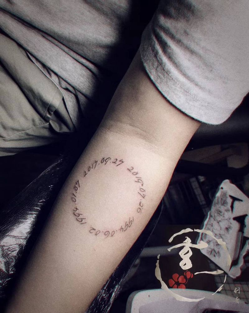 • T家庭图,一家四口生日纪念!纹身图片_手臂纹身图案