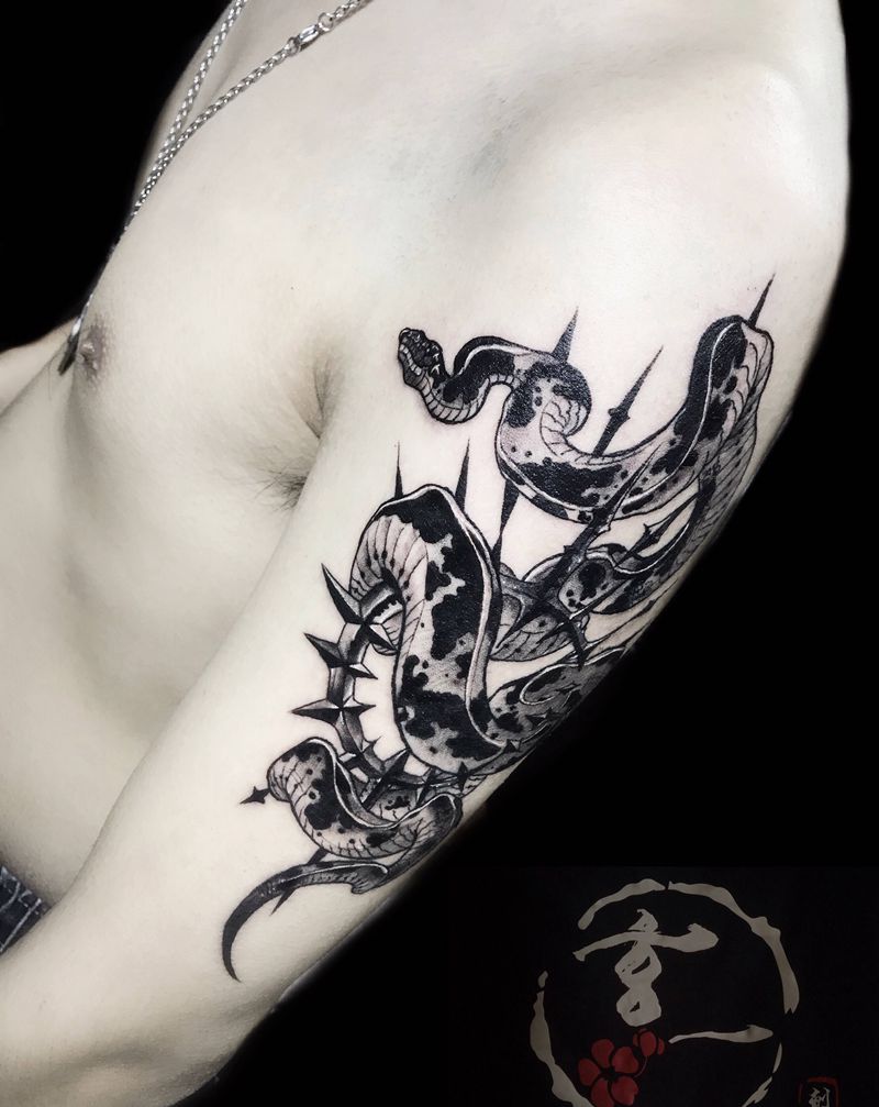 当前位置: 首页 >四川省眉山市纹身店-眉山玄一刺青纹身图案>蛇 内含隐秘设计纹身图片_手臂纹身图案