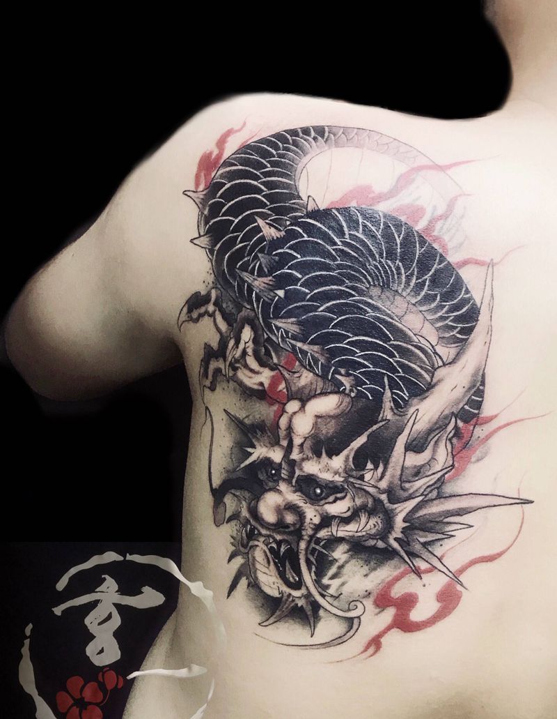 黑灰满背纹身图案