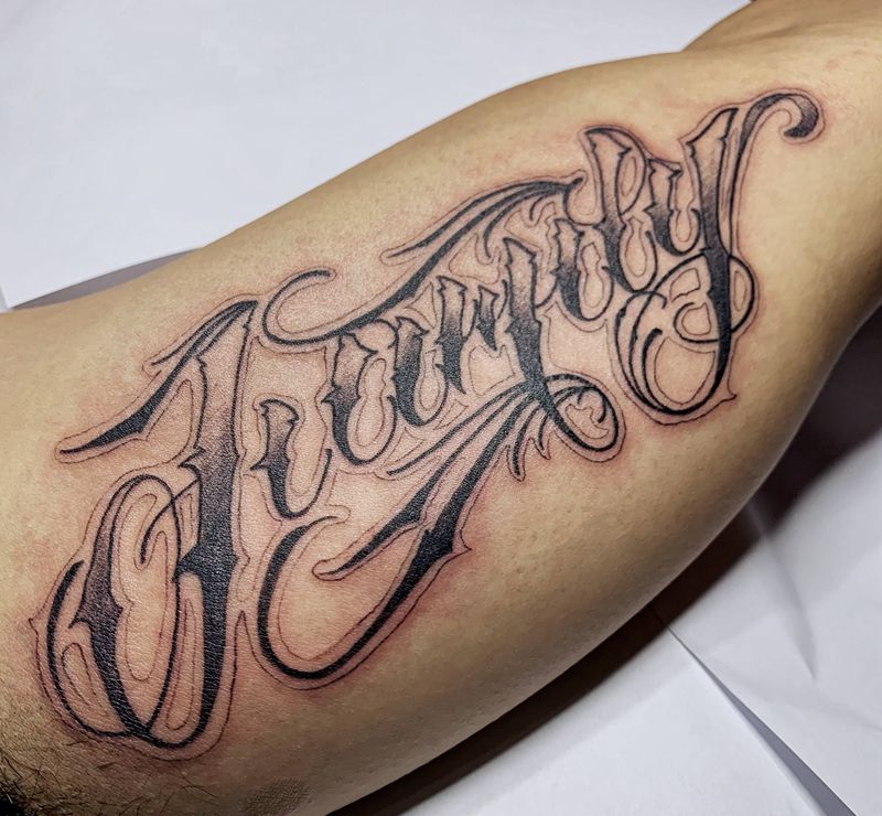 当前位置: 首页 >四川省达州市纹身店-渠县入墨人·刺青纹身图案>家庭纹身图片_花体字纹身图案