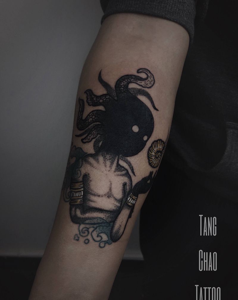 当前位置: 首页 >四川省雅安市纹身店-唐潮刺青纹身图案>克苏鲁旧日支配者纹身图片_手臂New School纹身图案