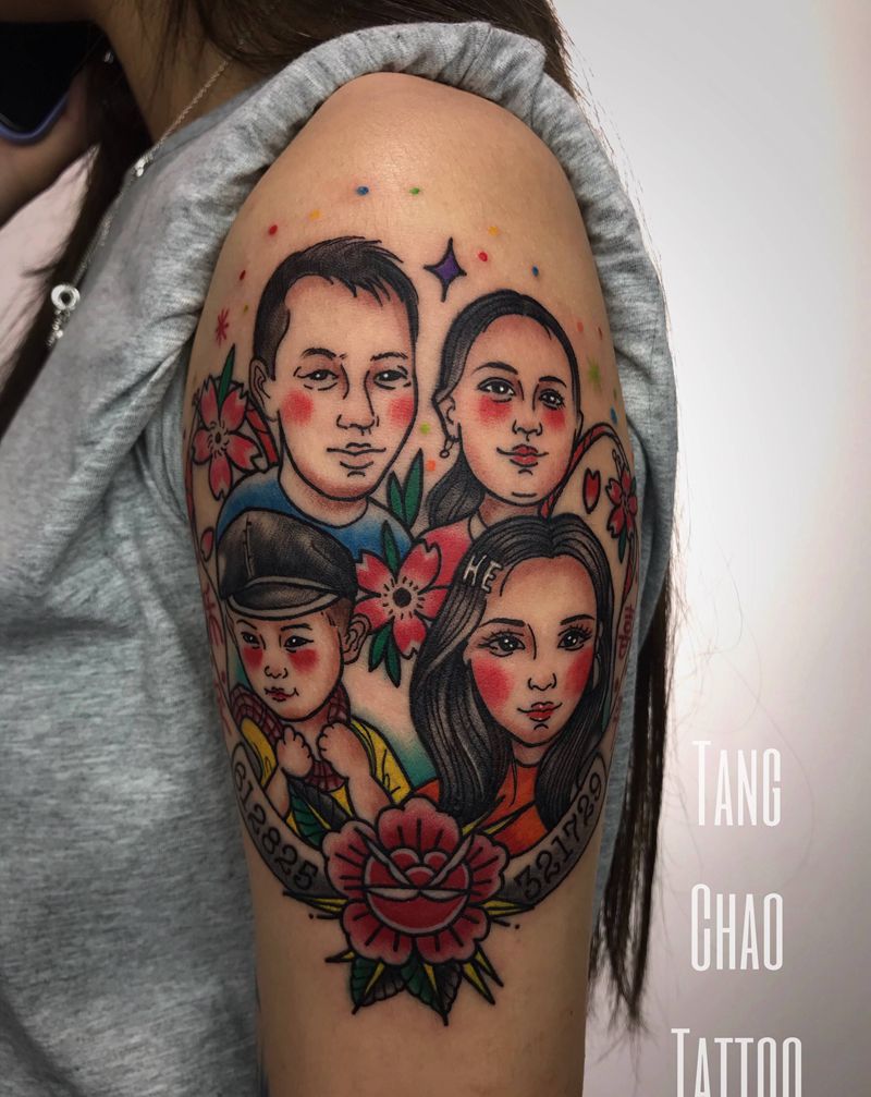 当前位置: 首页 >四川省雅安市纹身店-唐潮刺青纹身图案>平安喜乐一家人纹身图片_手臂New School纹身图案
