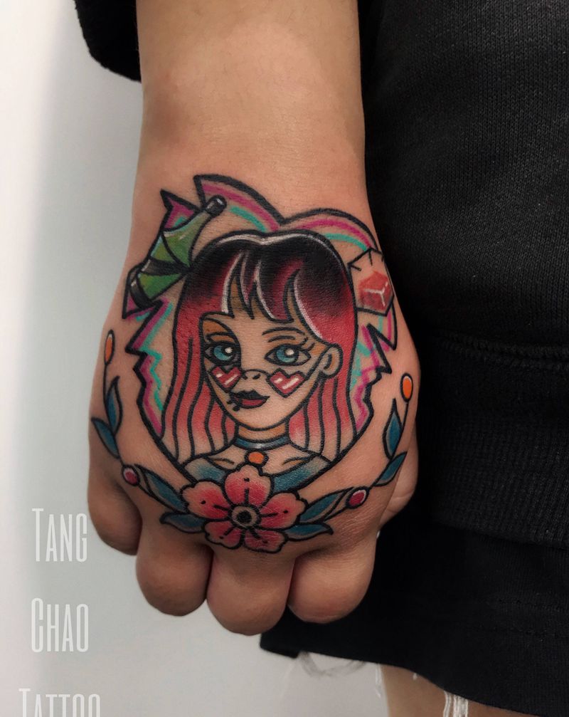 当前位置: 首页 >四川省雅安市纹身店-唐潮刺青纹身图案>朋克少女纹身图片_手部Old School纹身图案