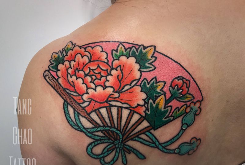 当前位置: 首页 >四川省雅安市纹身店-唐潮刺青纹身图案>花扇儿纹身图片_肩部新传统纹身图案