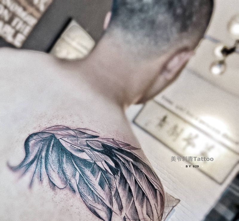 • 纹身吧推荐的披肩图腾半胛纹身图案作品展示
