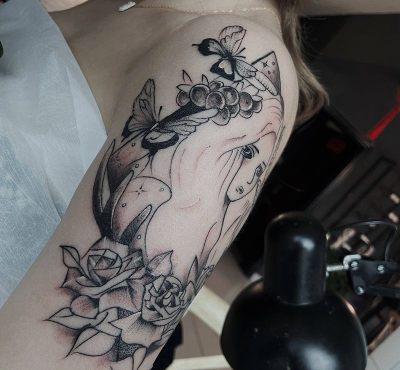 最近客户纹身图片_手臂腹部Old School新传统纹身图案