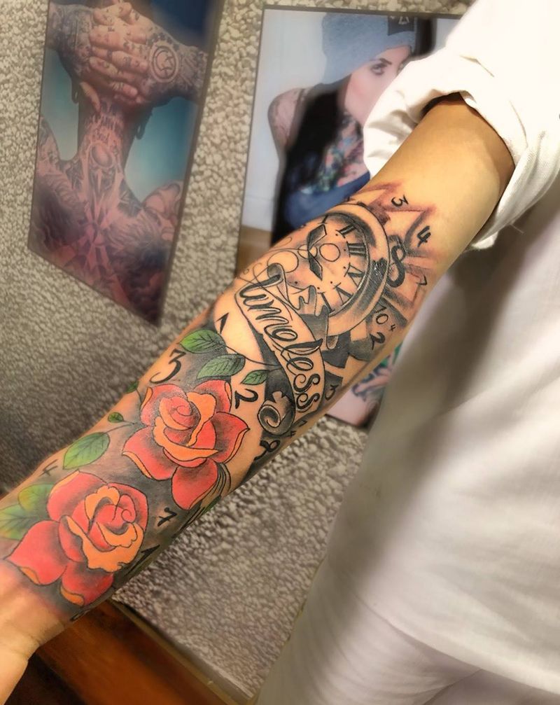 当前位置: 首页 >四川省巴中市纹身店-美爷刺青纹身图案>时钟玫瑰欧美纹身图片