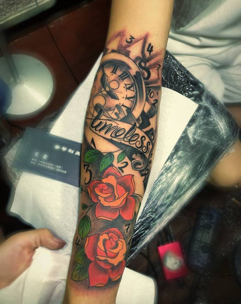 当前位置: 首页 >四川省巴中市纹身店-美爷刺青纹身图案>时钟玫瑰欧美纹身图片