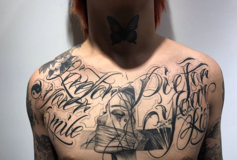 当前位置: 首页 >四川省雅安市纹身店-唐潮刺青纹身图案>匪帮花体纹身图片_胸部花体字纹身图案