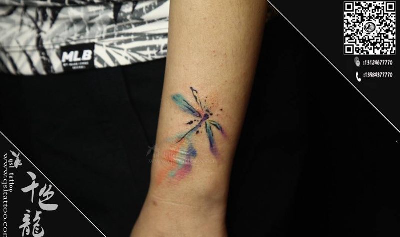 当前位置: 首页 >贵州省贵阳市纹身店-千色龙刺青纹身图案>水墨风蒲公英 蜻蜓纹身图片