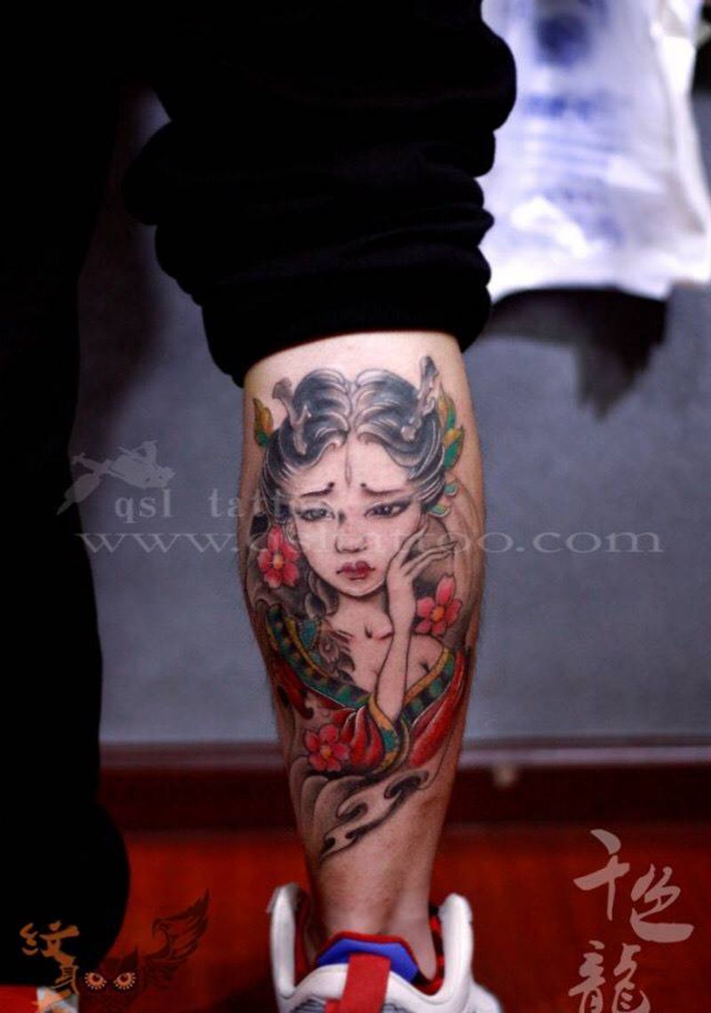 • T网红王老大花腿龙纹身图片_腿部新传统纹身图案