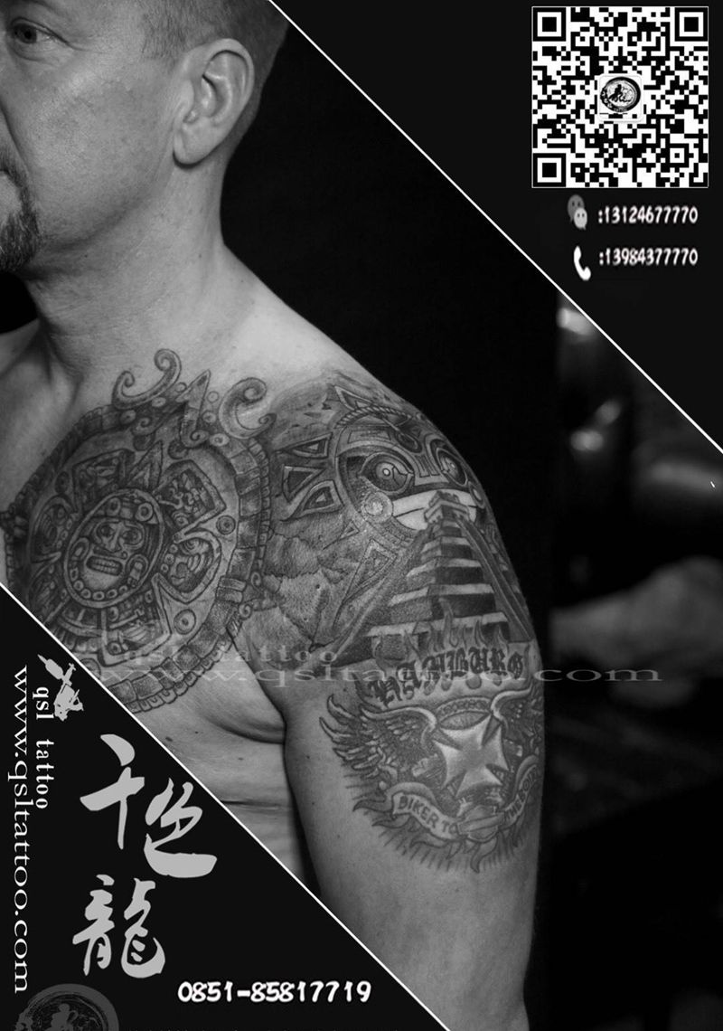 • 纹身吧推荐的披肩图腾半胛纹身图案作品展示