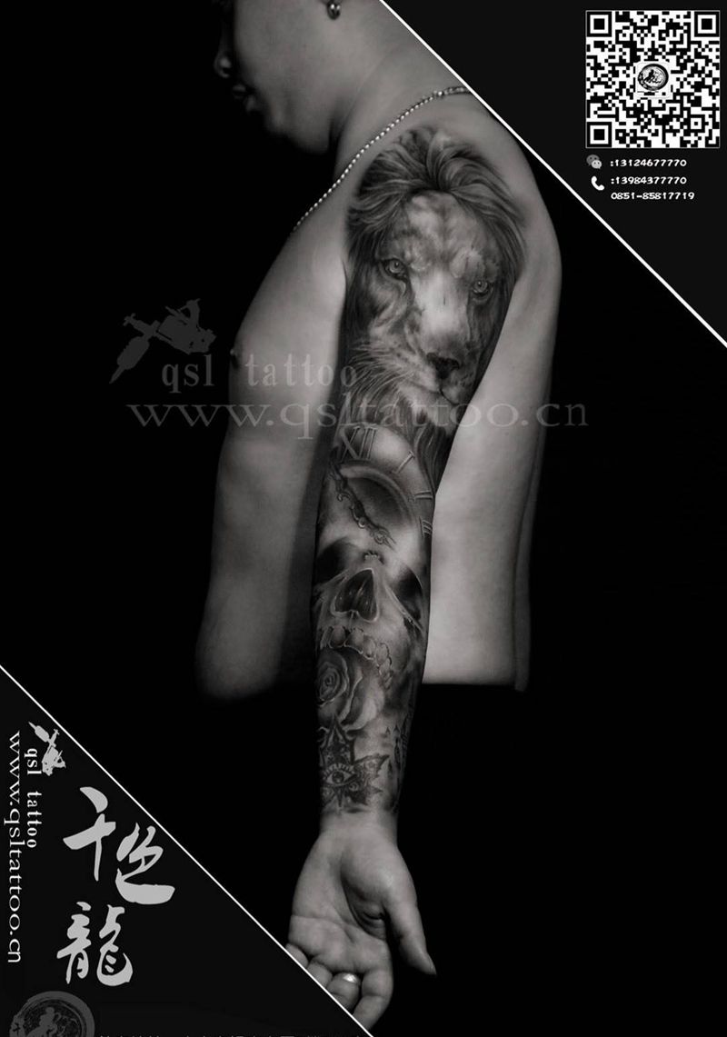 当前位置: 首页 >贵州省贵阳市纹身店-千色龙刺青纹身图案>欧美时钟+狮子~纹身图片