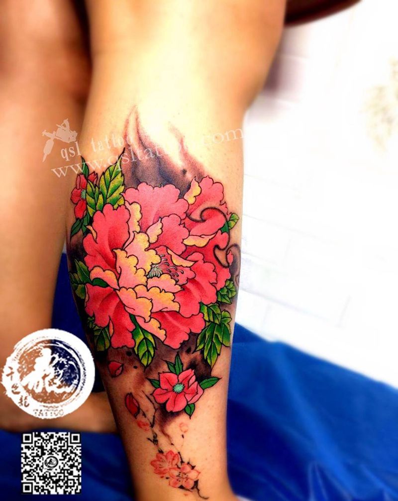 • T网红王老大花腿龙纹身图片_腿部新传统纹身图案