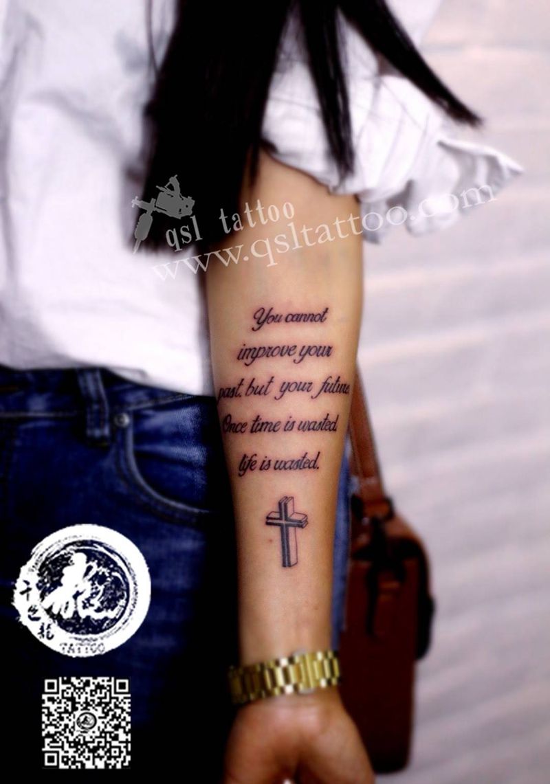 小臂内侧 十字架英文纹身图片