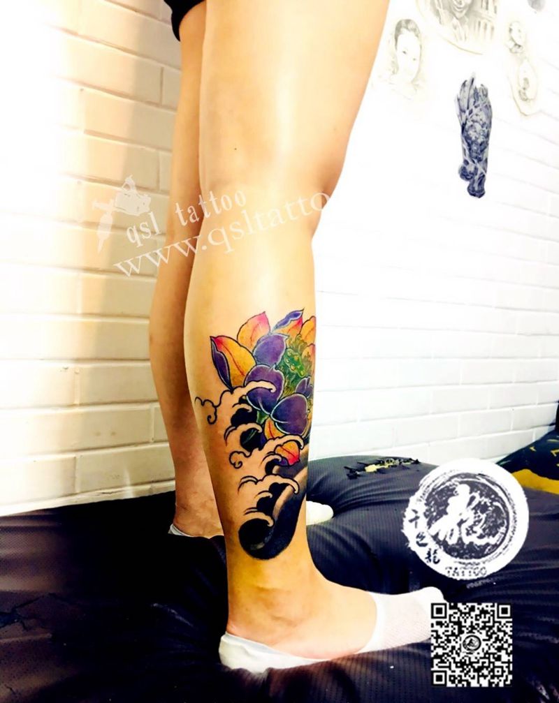 当前位置: 首页 >贵州省贵阳市纹身店-千色龙刺青纹身图案>小腿外侧 荷花纹身图片