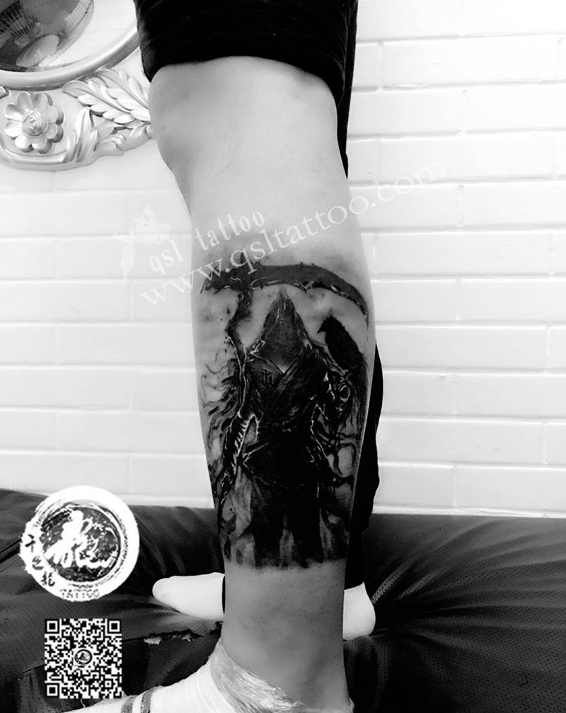小腿外侧 死神纹身图片