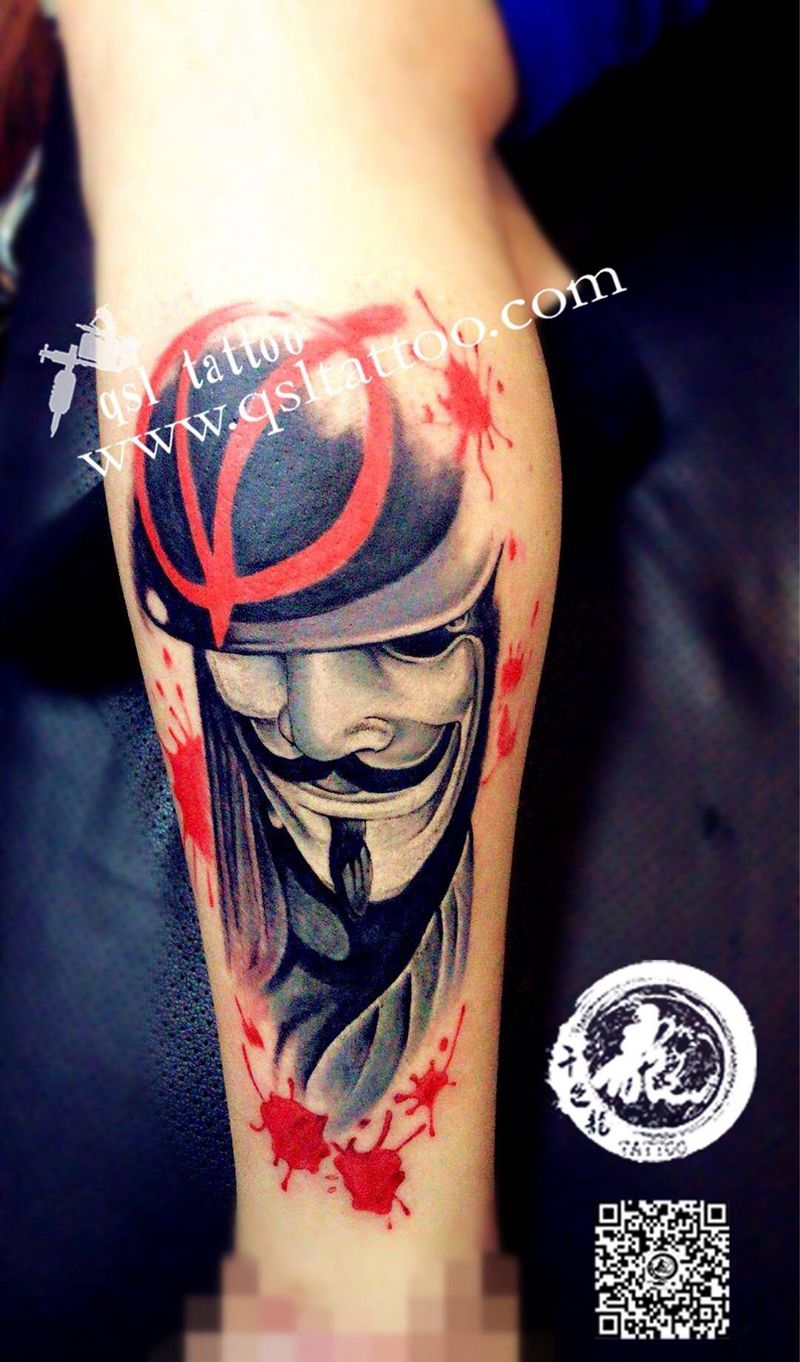 当前位置: 首页 >贵州省贵阳市纹身店-千色龙刺青纹身图案>小腿 V字仇杀队纹身图片