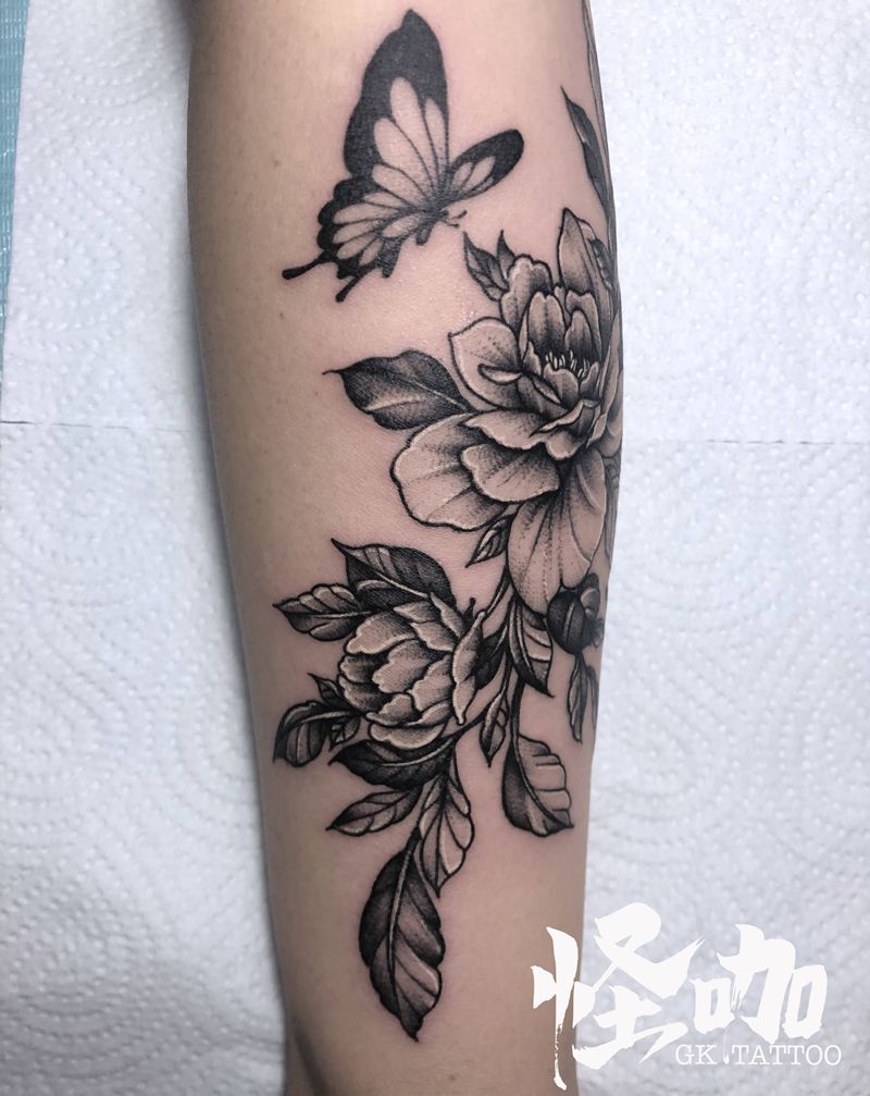 当前位置: 首页 >贵州省贵阳市纹身店-怪咖纹身刺青纹身图案>黑灰素花纹身图片_手臂点刺纹身图案
