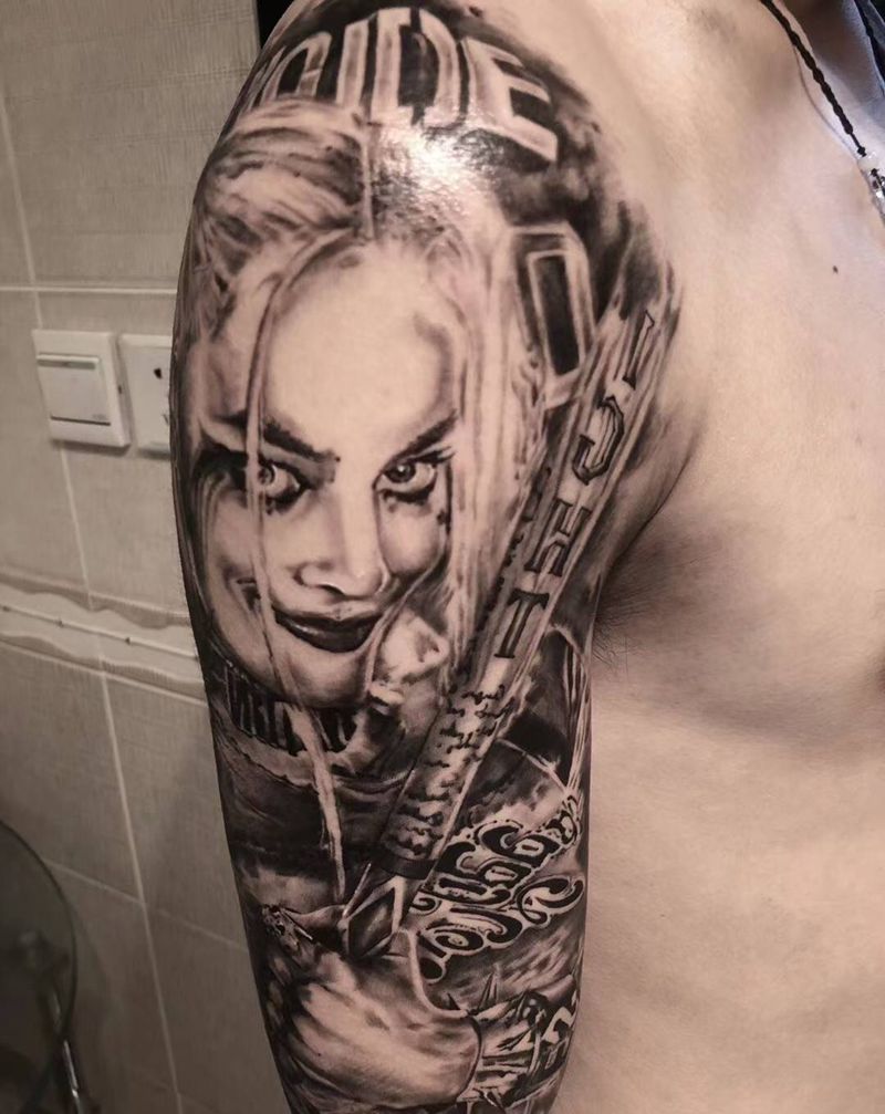 当前位置: 首页 >贵州省贵阳市纹身店-怪咖纹身刺青纹身图案>小丑女纹身图片_手臂欧美写实纹身图案