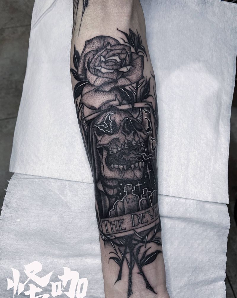 当前位置: 首页 >贵州省贵阳市纹身店-怪咖纹身刺青纹身图案>黑灰素描纹身图片_手臂欧美写实纹身图案