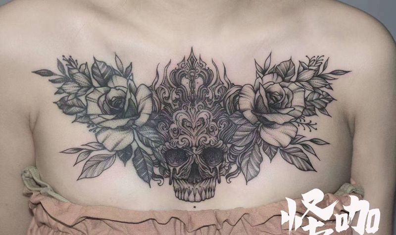 当前位置: 首页 >贵州省贵阳市纹身店-怪咖纹身刺青纹身图案>点刺花胸纹身图片_胸部点刺纹身图案