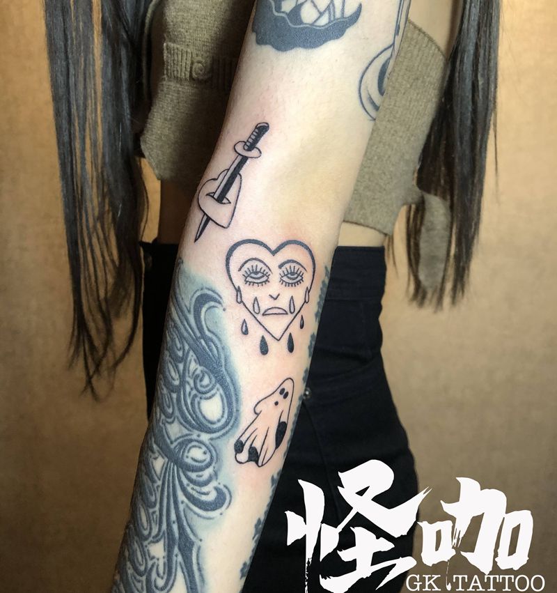 当前位置: 首页 >贵州省贵阳市纹身店-怪咖纹身刺青纹身图案>花臂拼接纹身图片_手臂Old School纹身图案