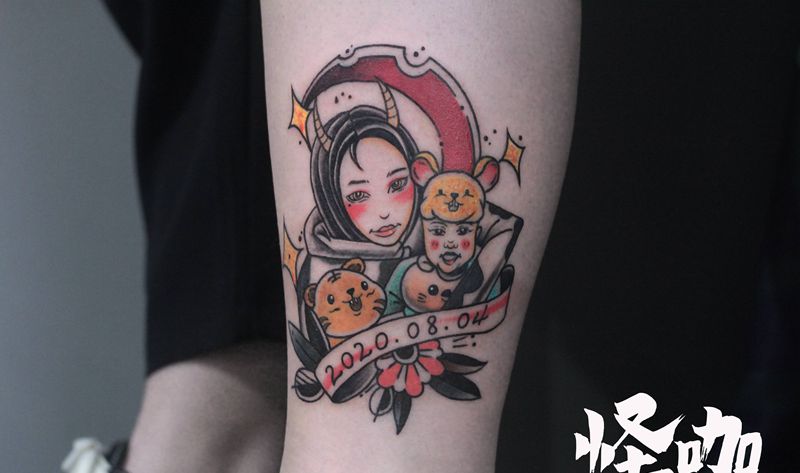 • T家庭图,一家四口生日纪念!纹身图片_手臂纹身图案