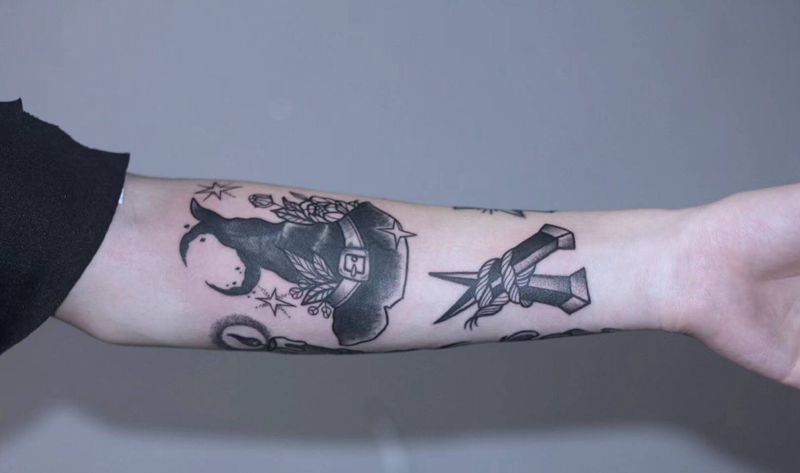 当前位置: 首页 >贵州省贵阳市纹身店-怪咖纹身刺青纹身图案>花臂拼接纹身图片_手臂Old School纹身图案