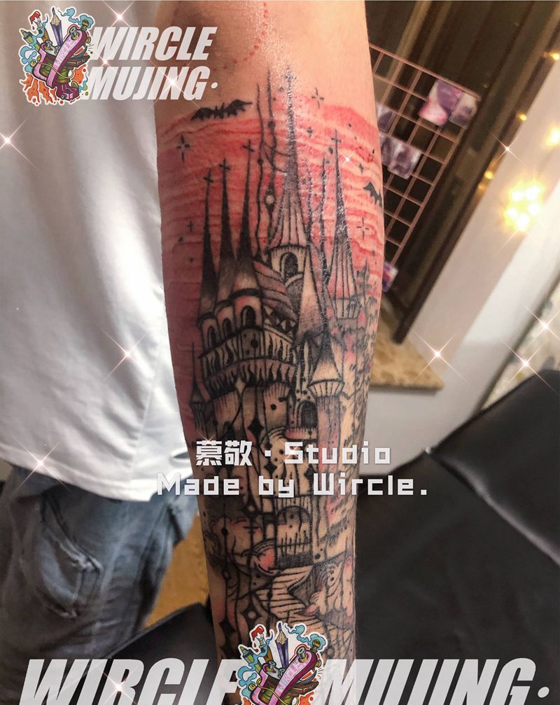 当前位置: 首页 >贵州省贵阳市纹身店-慕敬·STUDIO纹身图案>暗黑古堡 / 完纹身图片_手臂暗黑黑梦幻原创纹身图案