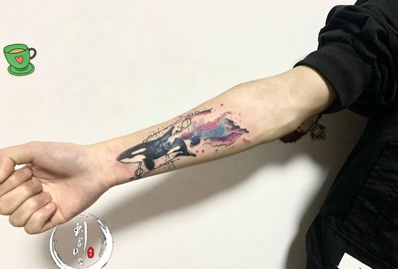 当前位置: 首页 >贵州省贵阳市纹身店-刺客联盟纹身刺青工作室纹身图案>虎鲸纹身图片_手臂水彩纹身图案