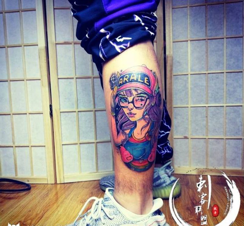 • T包小腿吹火男+阿多福纹身图片_腿部老传统新传统吹火男阿