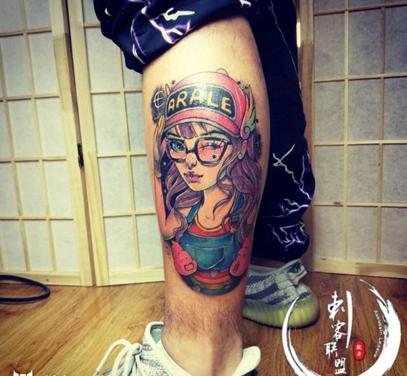• T包小腿吹火男+阿多福纹身图片_腿部老传统新传统吹火男阿