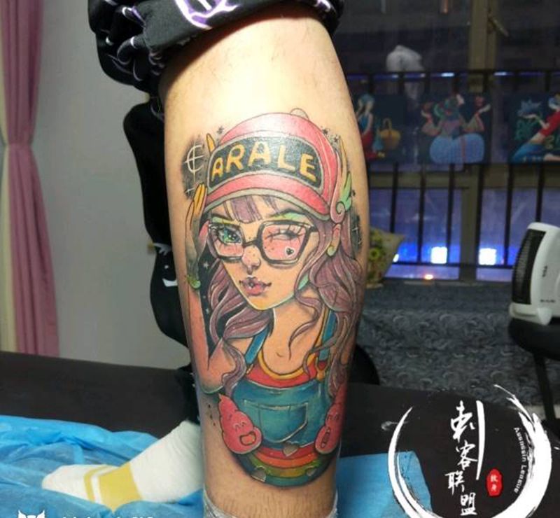 • T包小腿吹火男+阿多福纹身图片_腿部老传统新传统吹火男阿