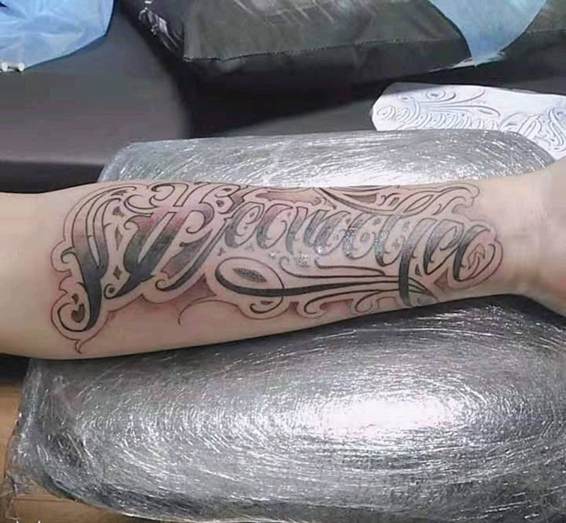 当前位置: 首页 >贵州省贵阳市纹身店-刺客联盟纹身刺青工作室纹身图案>奇卡诺花体字纹身图片_手臂花体字纹身图案