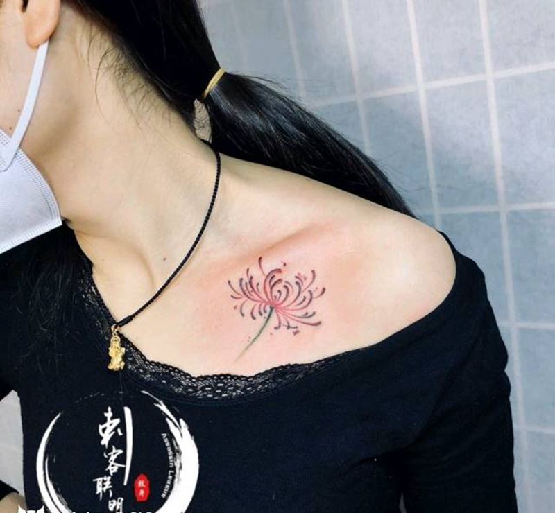 锁骨彼岸花纹身图片_胸部肩部纹身图案