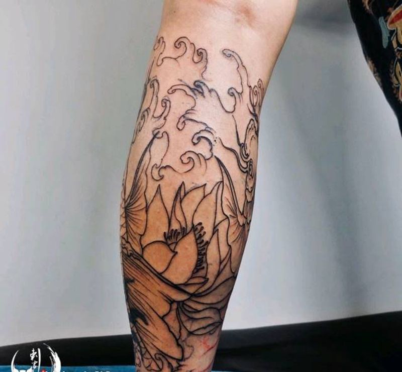 • T网红王老大花腿龙纹身图片_腿部新传统纹身图案