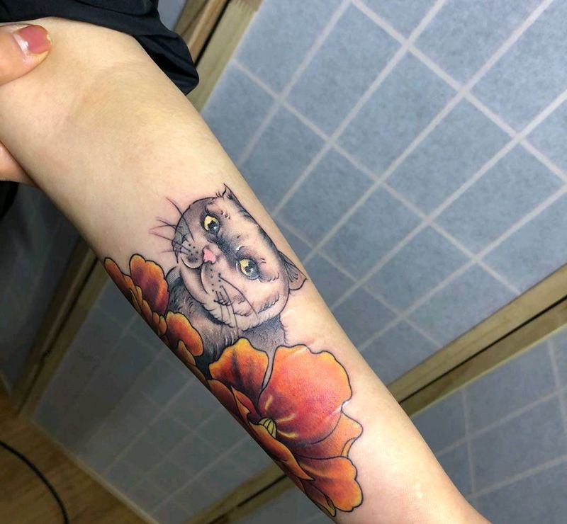遮盖☞丑丑猫纹身图片_手臂纹身图案