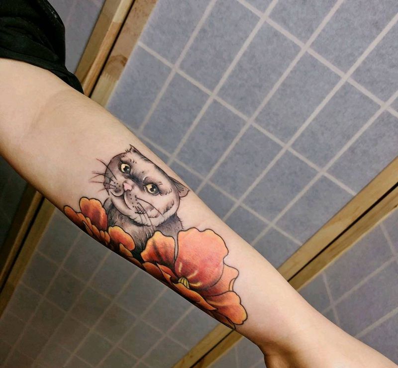 遮盖☞丑丑猫纹身图片_手臂纹身图案