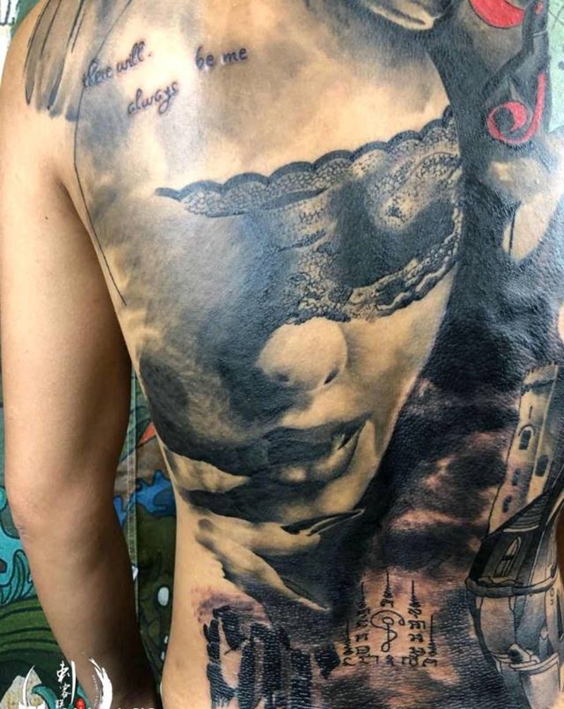 • 黑灰满背纹身图案