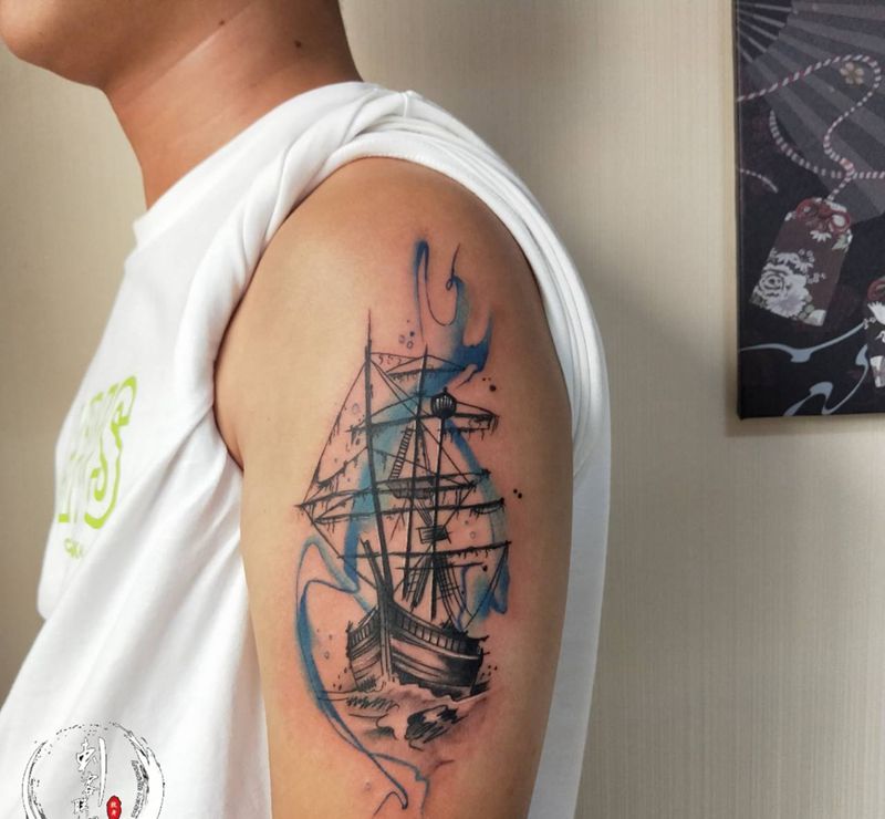 当前位置: 首页 >贵州省贵阳市纹身店-刺客联盟纹身刺青工作室纹身图案>三桅杆帆船纹身图片_手臂欧美写实纹身图案