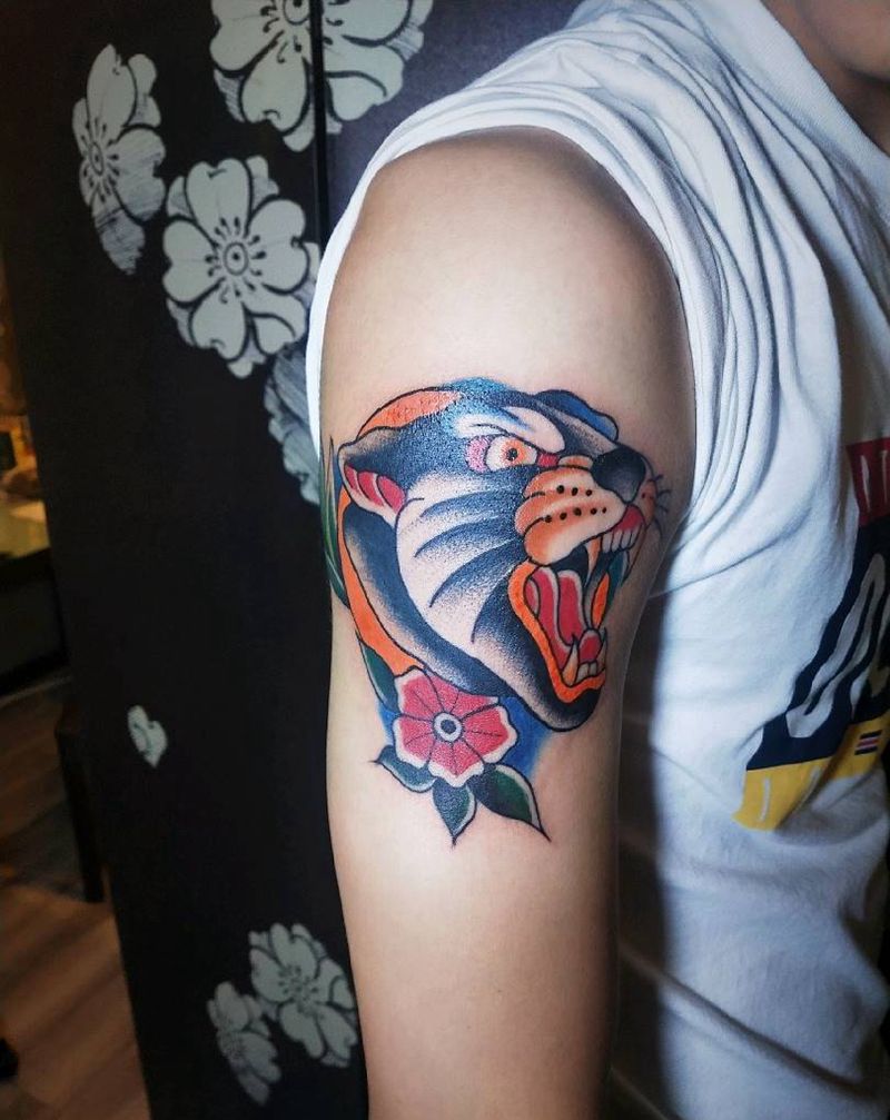 当前位置: 首页 >贵州省贵阳市纹身店-凯宣刺青纹身图案>黑豹纹身图片_手臂Old School纹身图案