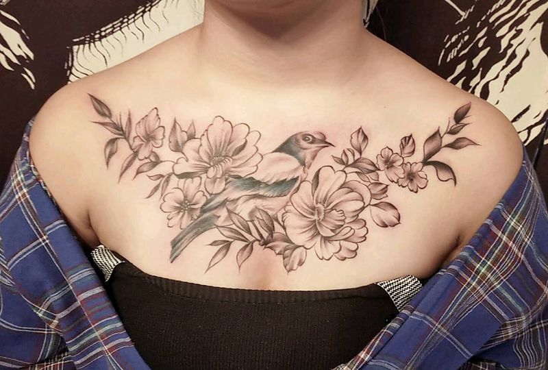 • 女性大花胸纹身_43张霸气漂亮的女性大花胸纹身图案作品