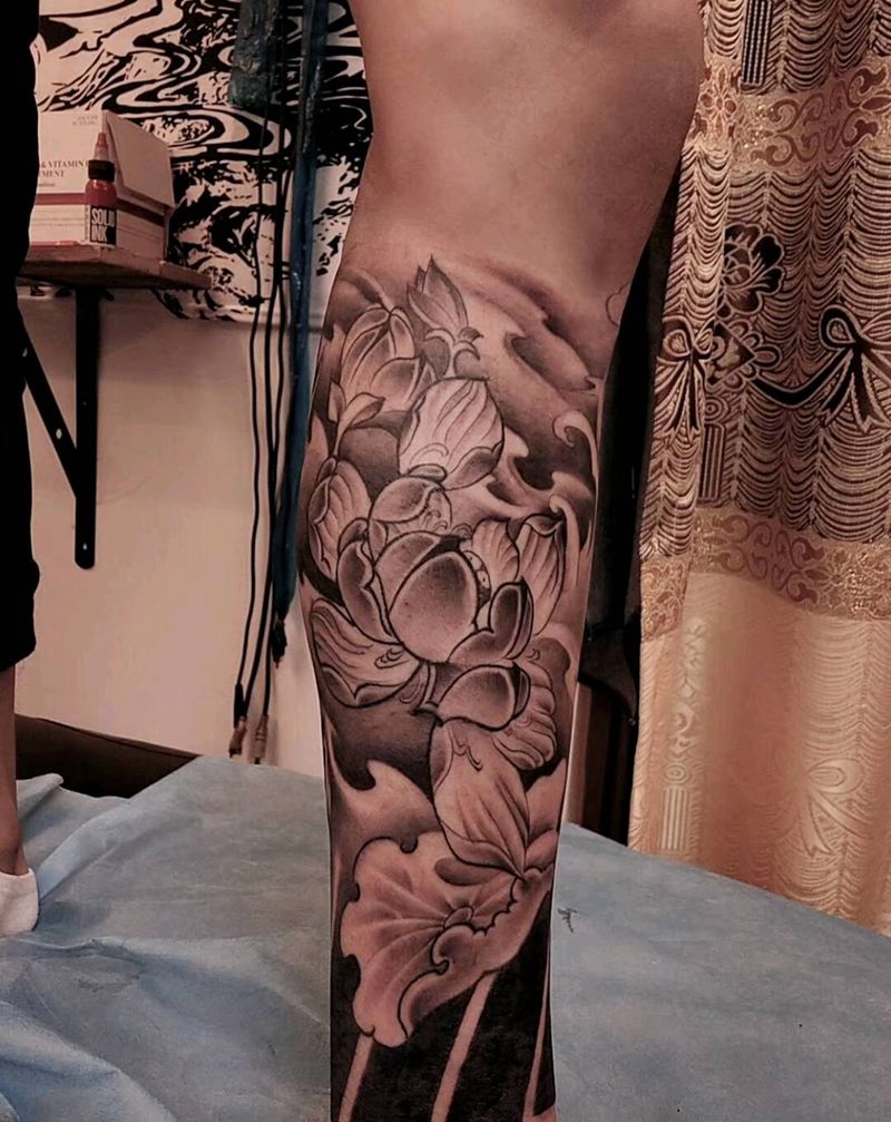 当前位置: 首页 >贵州省贵阳市纹身店-凯宣刺青纹身图案>新传统包小腿纹身图片_腿部新传统纹身图案