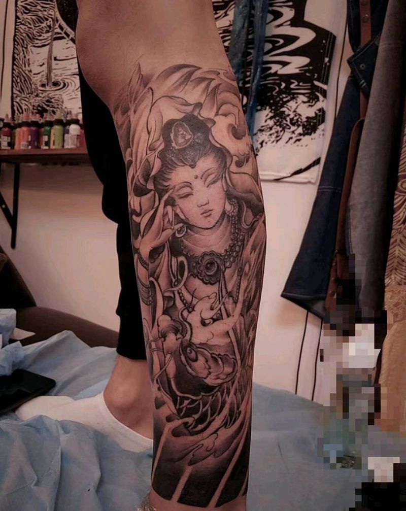 当前位置: 首页 >贵州省贵阳市纹身店-凯宣刺青纹身图案>新传统包小腿纹身图片_腿部新传统纹身图案