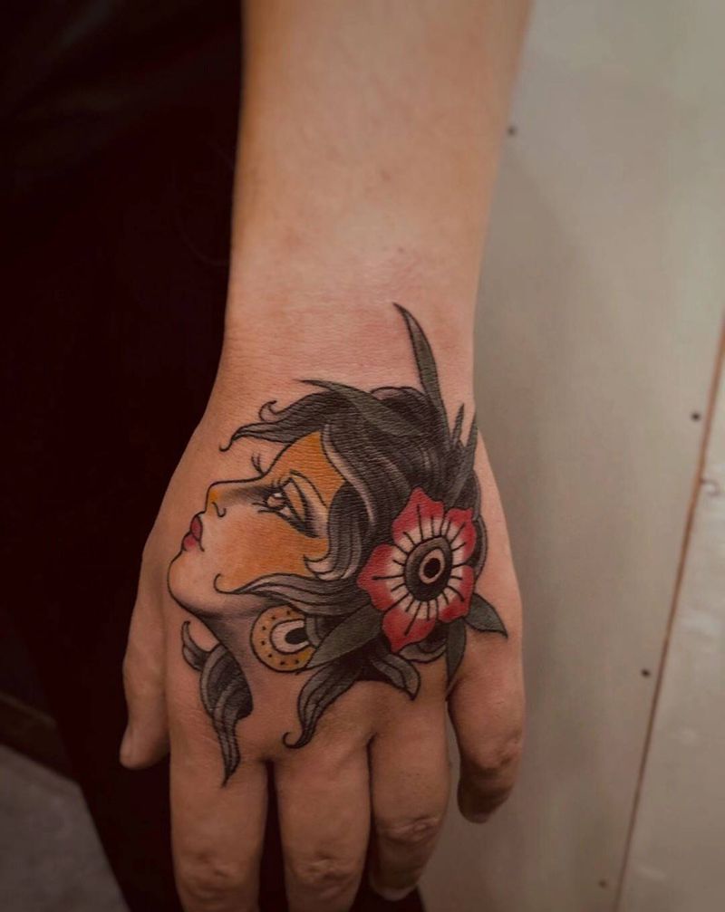 • 手背潮流时尚的玫瑰花眼睛纹身图案