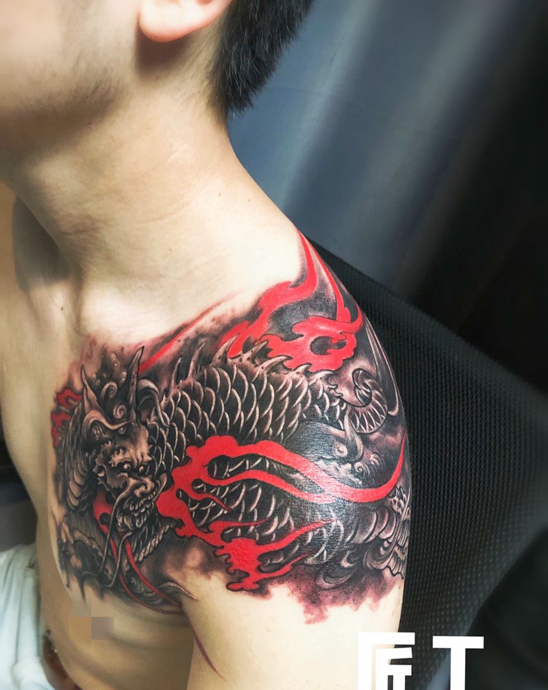 当前位置: 首页 >贵州省贵阳市纹身店-匠工刺青纹身图案>麒麟纹身图片_肩部背部新传统纹身图案
