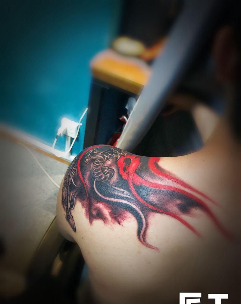 • 纹身吧推荐的披肩图腾半胛纹身图案作品展示