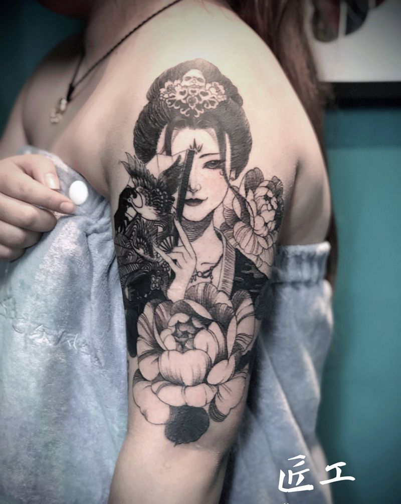 当前位置: 首页 >贵州省贵阳市纹身店-匠工刺青纹身图案>艺妓纹身图片_手臂纹身图案