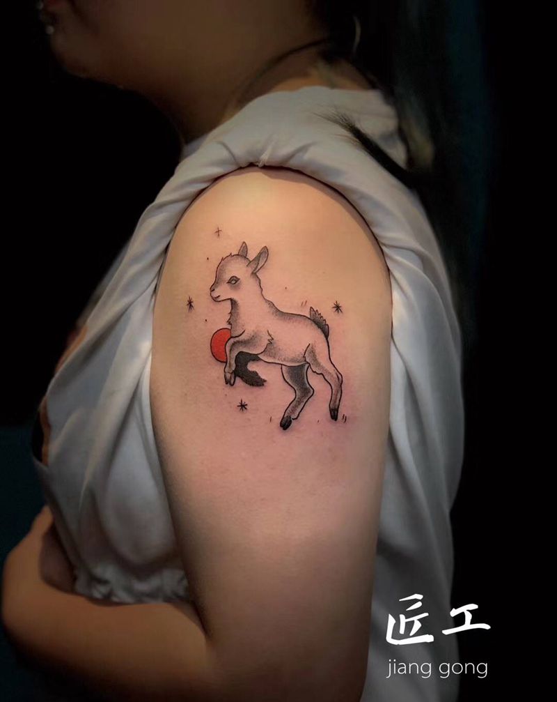 当前位置: 首页 >贵州省贵阳市纹身店-匠工刺青纹身图案>羊纹身图片_手臂Old School纹身图案